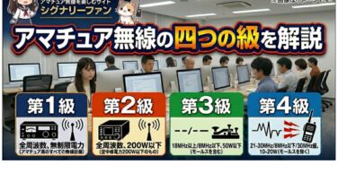 おすすめ記事 アマチュア無線の四つの級を解説。級が違うと何が違う? 日本では国家資格であるアマチュア無線技士の級は全部で4つ。それぞれの級とアマチュアの『アマ』をつけて『○アマ』と略されるのが一般的です。取得には国家試験と『養成課程講習会』があり、最上級の1アマ以外は養成課程講習会でも取得が可能です。上級に... 2024.11.29 おすすめ記事資格と免許の取得