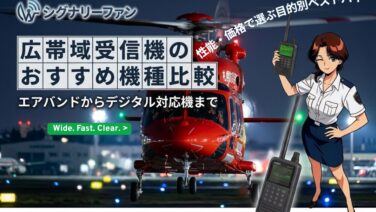 おすすめ記事 おすすめハンディ広帯域受信機の機種比較 この記事では、各メーカーから発売されている広帯域受信機について、特徴や違いをご紹介いたします。広帯域受信機には大きく分けて二つのタイプが存在します。一つはハンディタイプで、もう一つは室内に据え置いて使用するデスクトップタイプです。ゆりえ・デ... 2025.11.01 おすすめ記事広帯域受信機航空無線