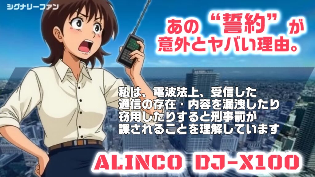 広帯域受信機 DJ-X100(受信改造済み)では電源投入後に『誓約』画面が表示される意味とは 無線の受信に関しては、国によって適用される法律は異なります。とはいえ、多くの国で「受信」と「送信」では、法的な扱いが大きく異なっているのが一般的です。特に日本でのアマチュア無線については、資格や免許がない状態での運用は完全に違法とされていま... 2025.09.05 広帯域受信機