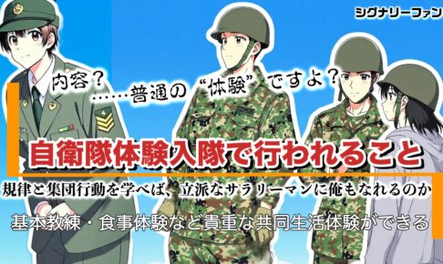 この記事では俗に『自衛隊体験入隊』と呼ばれる隊内生活体験制度についてご紹介いたします。 『学生や社会人を対象とした「隊内生活体験」が人気だけど、一人でも入隊可能?』 『最近、企業が自衛隊体験入隊させるのが流行ってるみたい…