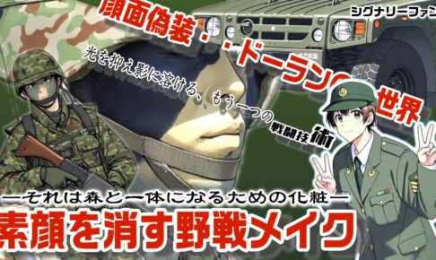 訓練中の自衛隊員は顔を単一の暗緑色で塗りつぶしたり、まるで西瓜のような模様を描いている状況があります。 これは「擬装(ぎそう)」と 呼ばれるもの。 で、擬装に使う塗料を米軍では「フェイスペイント」や「カムフラージュ・メイ…