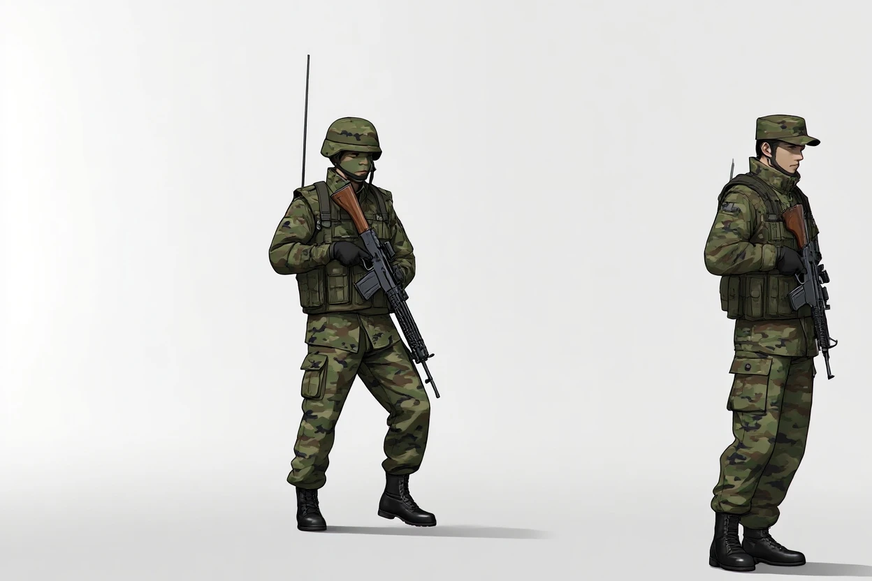 自衛隊のドーランの塗り方には、昼間と夜間の擬装で異なる方法が採用されています。