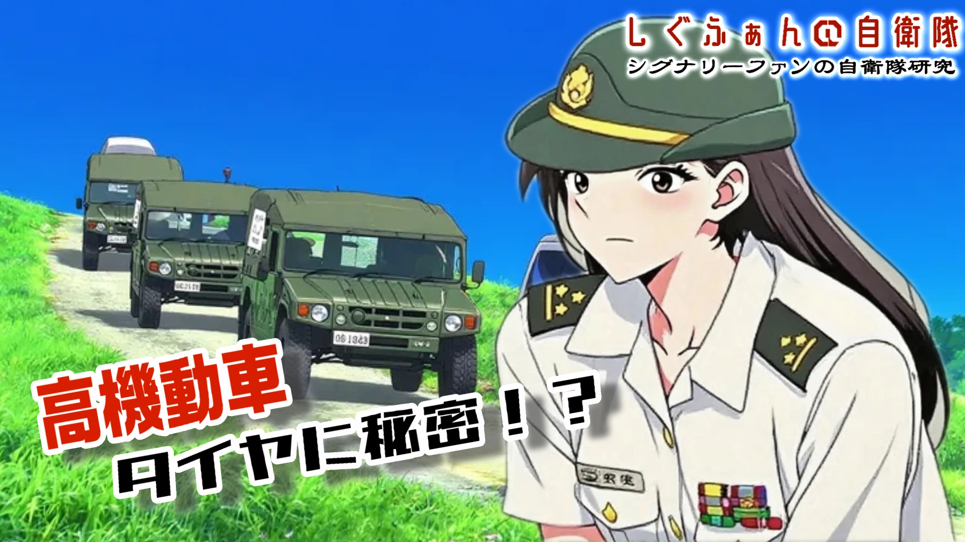 高機動車は、悪路でもしっかりと路面を捉えるために、非常に太く、扁平率の高いタイヤを装着しています。