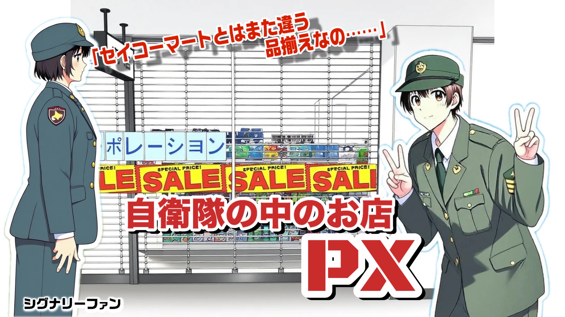 さて、本題はここからだ。自衛隊におけるPX(Post Exchange)は、日々の生活に必要な雑貨、雑誌、迷彩の私物グッズ、果てはお土産までを取り揃えた民間運営の売店、ということになる。旧軍時代なら「酒保」と呼ばれたそれは、もはや一種の文化施設である。