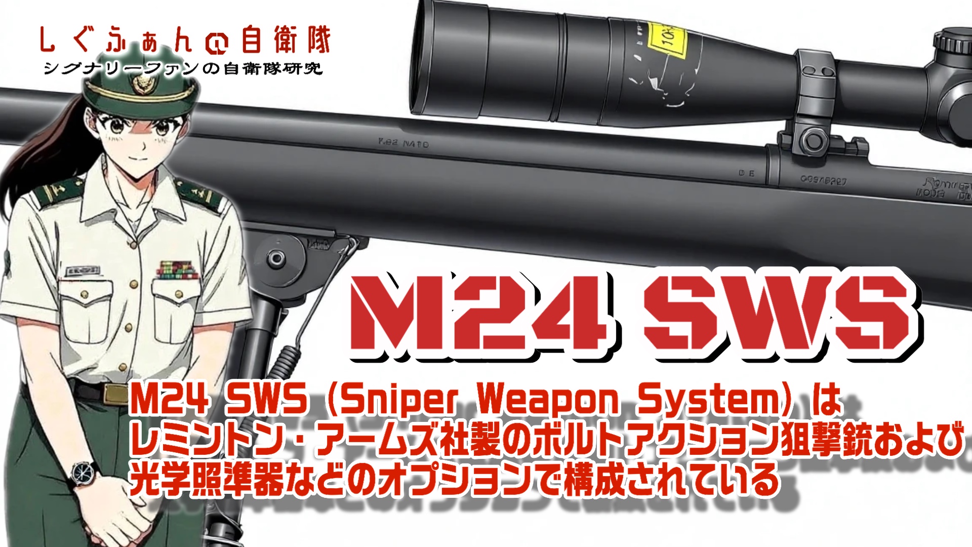 陸上自衛隊は2006年から「対人狙撃銃」っちゅう新装備を導入し始めたんや。まあ、この銃の原型は、アメリカのレミントン社が作った狩猟・競技用ライフル「M700」やねんけど、それを軍・警察用にチューンナップ改良版が『M24 SWS(Sniper Weapon System)』っちゅうわけやな。