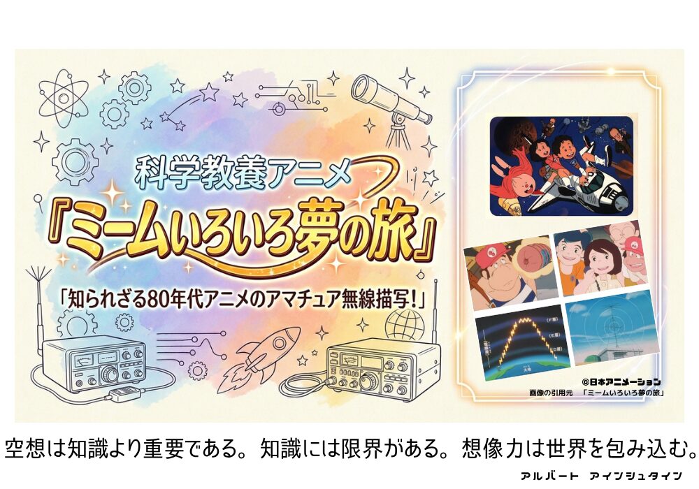 アマチュア無線の成り立ちを皮切りに、業務無線との違い、電離層の役割、さらには無線が災害時にいかに有効か──そうした話を、子どもたちにとことんまで叩き込むミーム。