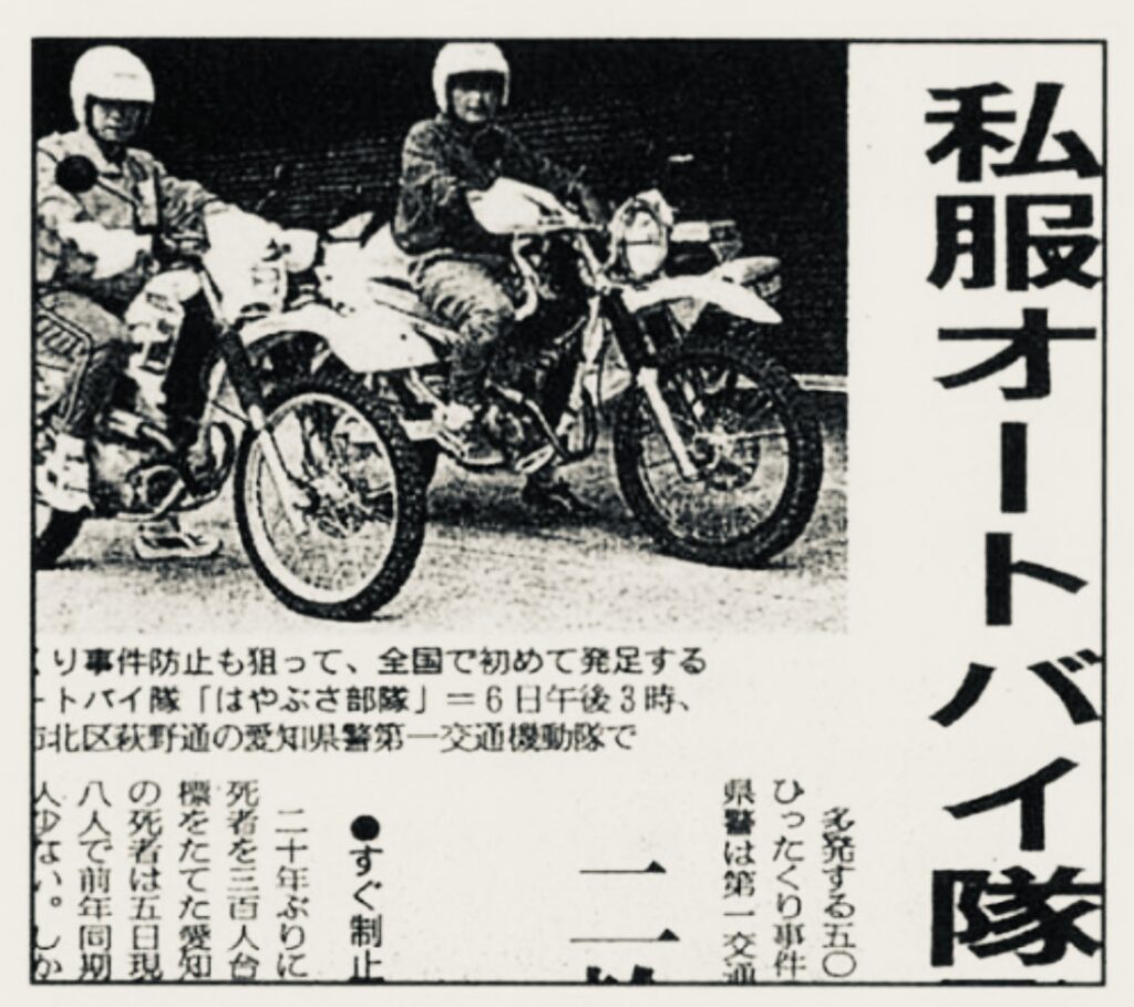 【1999年】交機が私服!?愛知県警第一交通機動隊に私服バイク隊「はやぶさ部隊」誕生!交通警察と刑事警察の機能的融合か