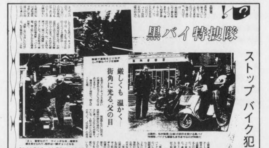1990年には、富山県警高岡署が「黒バイ特捜隊」を設けたという新聞報道があります。主たる背景には、バイクを使った犯罪(窃盗・逃走)への対応困難という具体的な地域課題があるようです。