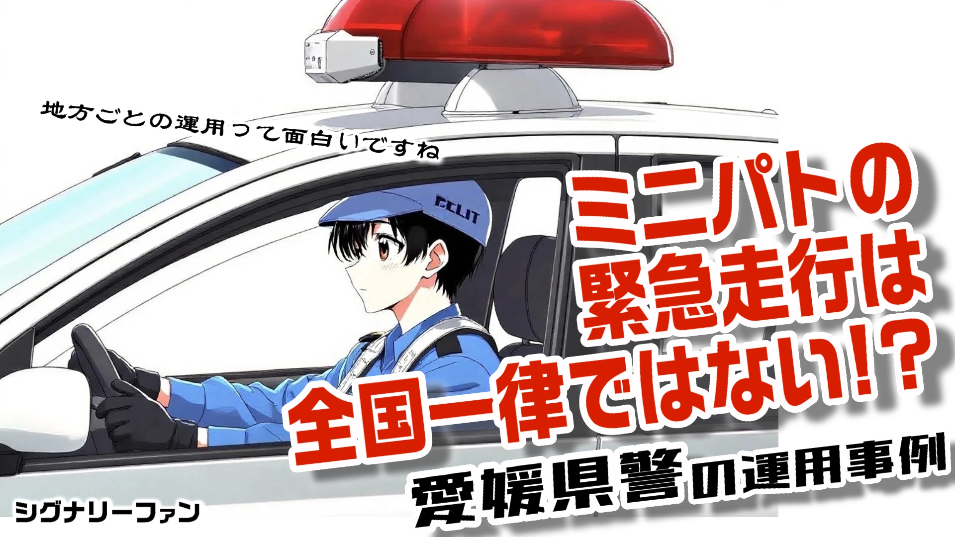 確認したいが、愛媛県警でも完全に禁止しているわけではなく、特別な事案では認められているほか、全国でもミニパトの緊急走行事例は実務上、至ってポピュラーである。