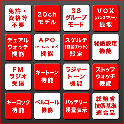 ただし、市場にはレジャー使用を想定した20ch機と、業務使用を想定した47ch機の二つが販売されているため、機種によってはチャネル数により通話できない場合もあります。