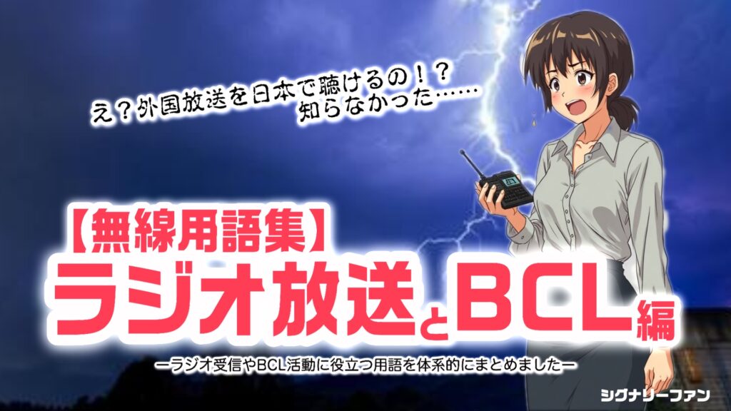 無線用語集 【無線用語集】ラジオ放送受信とBCL関係の用語集 本記事では、ラジオ放送受信とBCL関係の専門用語をわかりやすくまとめました。気になる用語から各種記事にリンクで飛べますので、知識を広げながら無線ライフをより楽しんでください。 🚫 免責事項本用語集に記載された解説や説明は、あくまで無線受信・... 2025.08.31 無線用語集