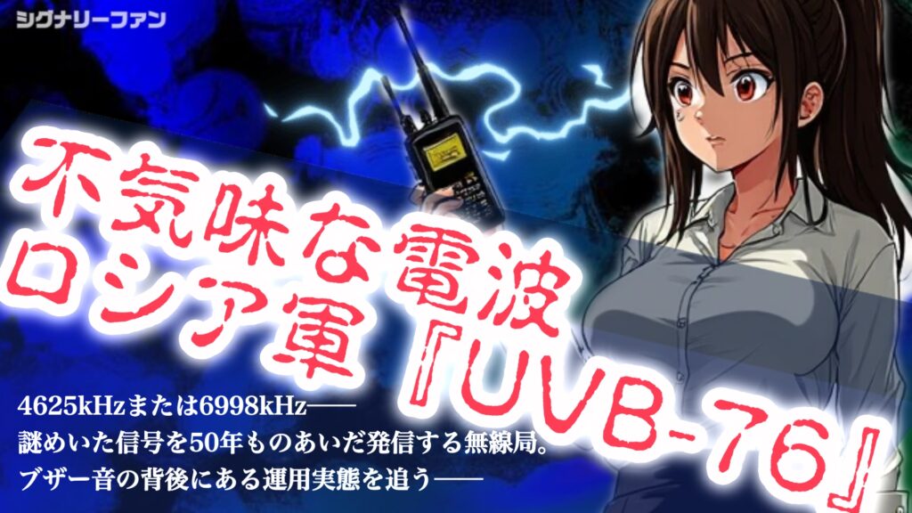 ロシアのモスクワ近郊の村から、4625kHzか6998kHzの周波数使て、SSBモードで短いブザー音が24時間ずーっと流れとる「UVB-76」、通称 “The Buzzer”(ザ・ブザー)。 ソ連 … 続きを読む 【ライブ配信あり】ロシア軍の謎無線局“UVB-76”に萌えアニメソングで突如電波妨害!→世界騒然